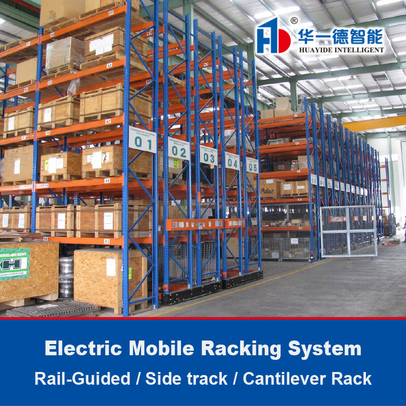 HUAYIDE's motorized mobile pallet rack also called aisle opening pallet rack, is a high density, selective solution for palletized products stored in production workshop, distribution center and frozen warehouse.